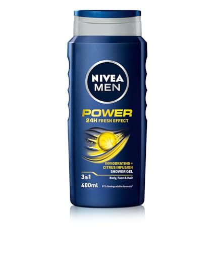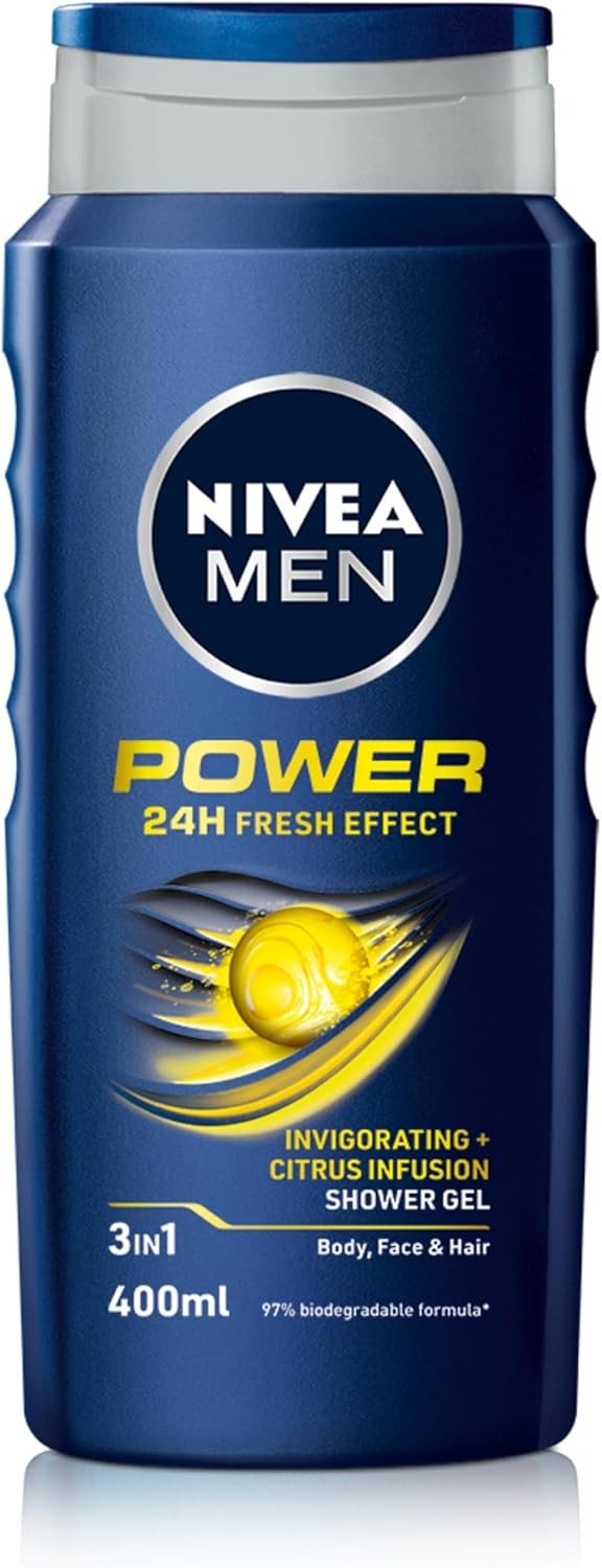 NIVEA MEN Power Fresh Shower Gel (400ml, Pack of 6), Moisturising Body Wash with Aloe Vera, All-in-1 Body Wash for Men, Energising NIVEA MEN Shower