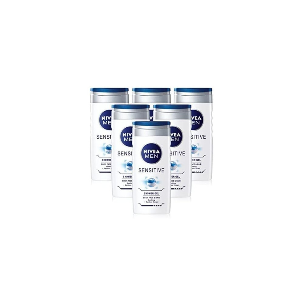 NIVEA MEN Sensitive Shower Gel Pack of 6 (6 x 250ml), Alcohol-Free Sensitive Skin Shower Gel, Gentle Shower Gel for Men, Shower Gel for Irritated