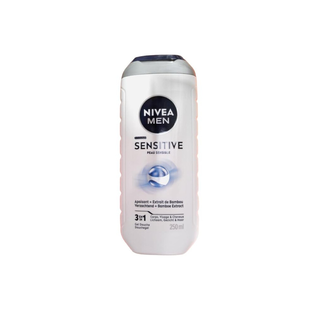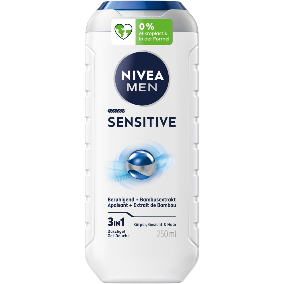 NIVEA MEN Sensitive Shower Gel, pH Neutral Shower Gel for Men with Sensitive Skin, Mild Formula with Bamboo Extract for Body, Face and Hair (250 ml)