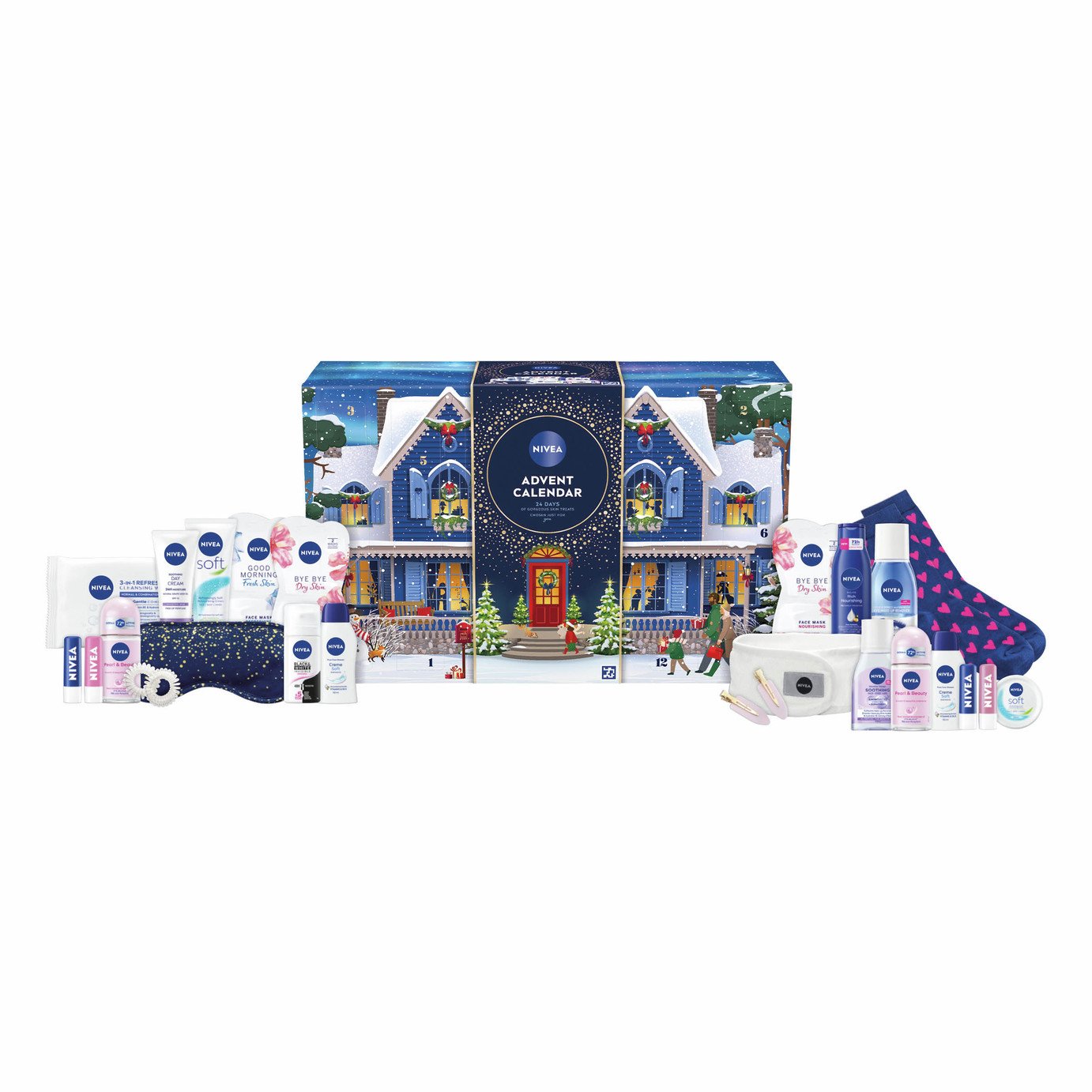 NIVEA Advent Calendar 2024, Women's Gift Set Includes Moisturiser, Face Masks, Lip Balms, Body Cream, Shower Gel, Anti-Perspirant, and More, Complete Skincare Set