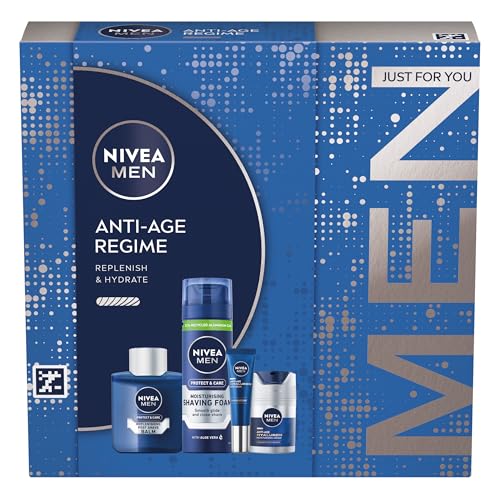 NIVEA MEN Anti Age Regime Gift Set (4 Products), Men's Anti Wrinkle Skincare Gift Set with Shaving Foam, Post Shave Balm, Face Moisturising Day Cream, and Eye Cream