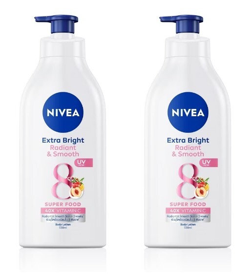 2 x NIVEA Extra Bright Smooth Super Food Body Lotion 550ml Vitamin C UV
