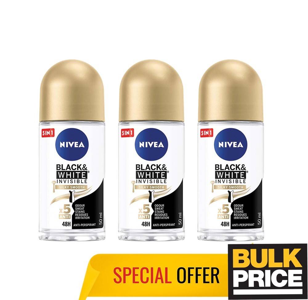 NIVEA Invisible Silky Smooth Roll-on Deodorant Anti-Stain 50ml 3-Pack