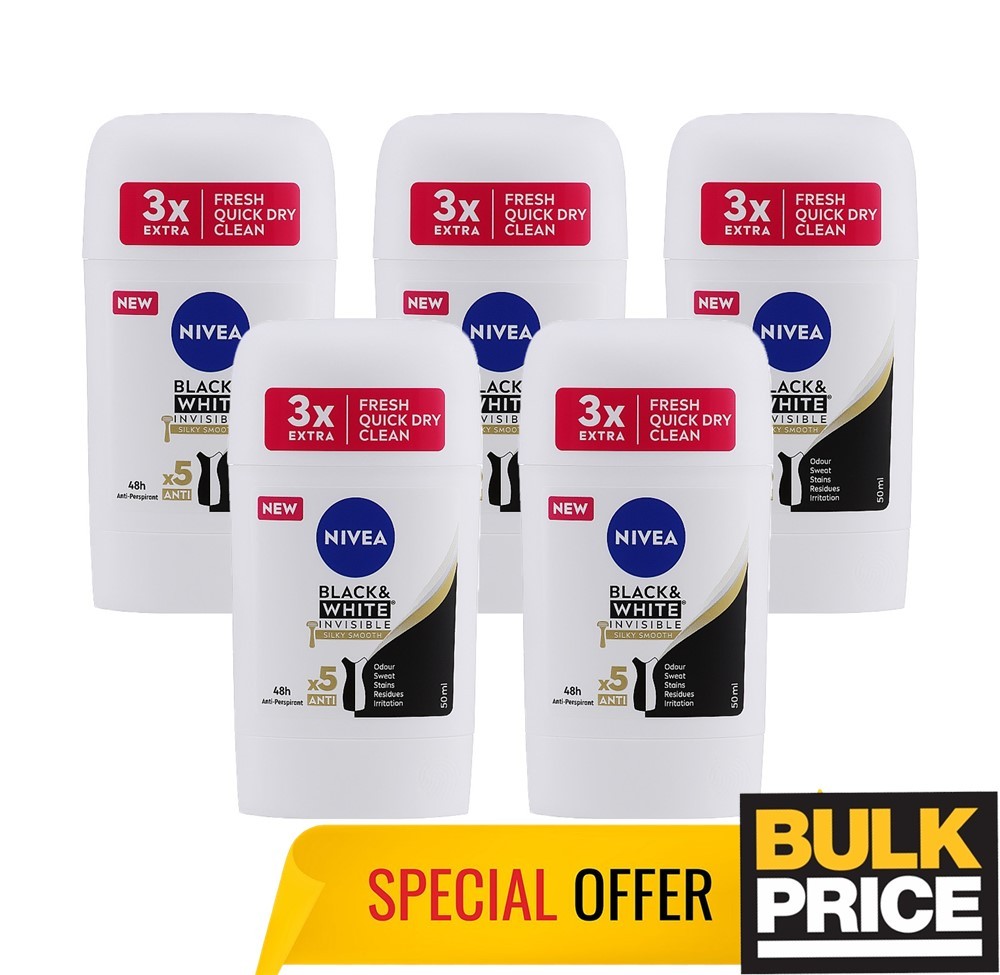 Nivea Women Invisible Silky Smooth Deodorant Stick Anti-Stain 50ml 5-Pack