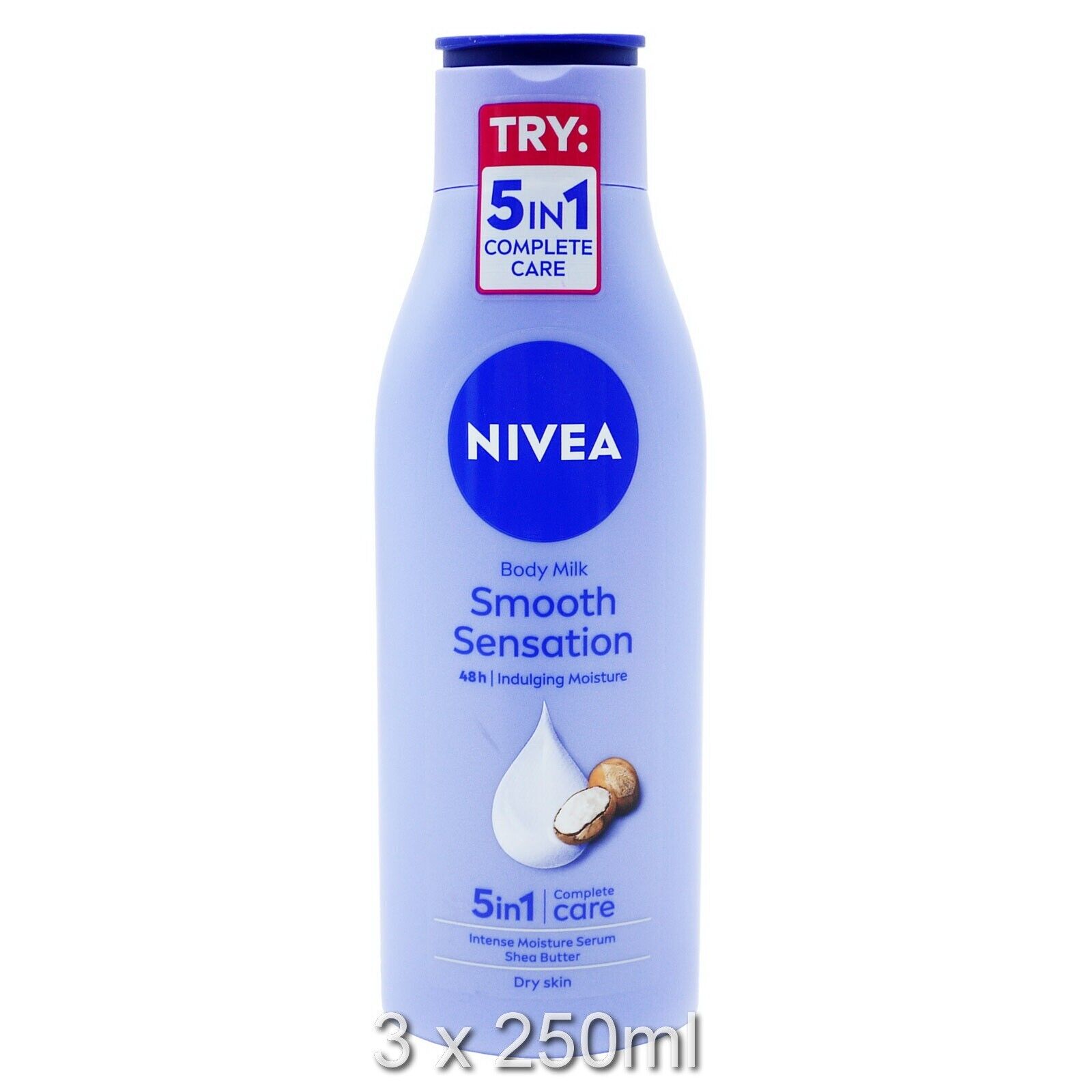 NIVEA BODY MILK SMOOTH SENSATION DRY SKIN MOISTURISING CREAM 250ML 3 PACK