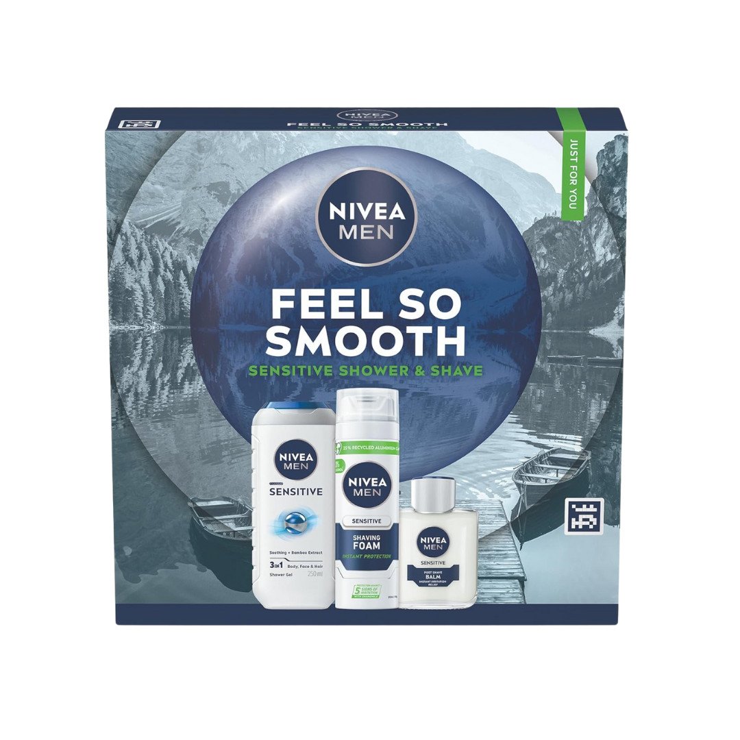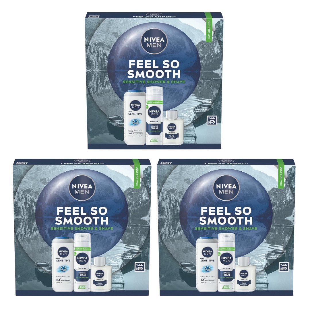NIVEA MEN Feel So Smooth Skincare Gift Set (3 Products) - Men'sGift Set for Sensitive Skin – Includes Shower Gel, Shaving Foam, and Post Shave Balm