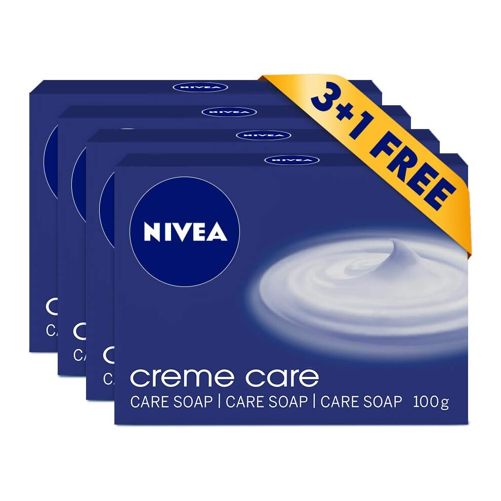 NIVEA Creme Care Soap Bar Original Scent of NIVEA Creme 100g Pack Of 4 | Protection Against Bacteria, Allergens & Pollution