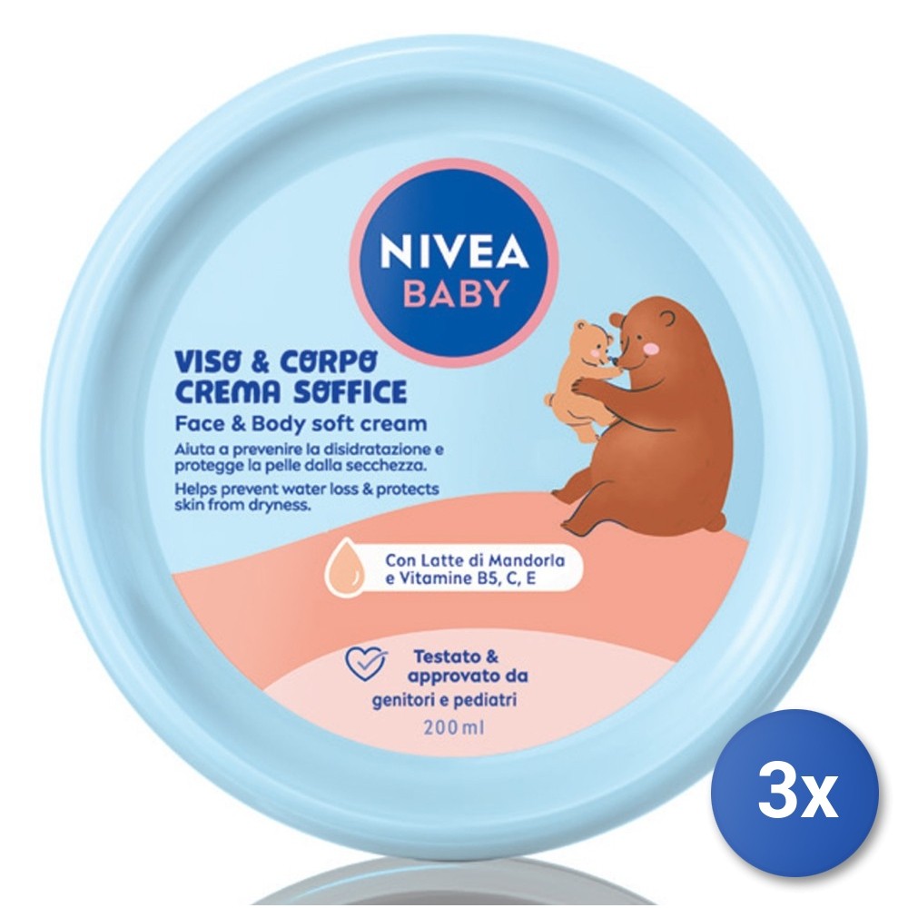 3X Nivea Baby 200 Ml Soft Cream Jar 80529