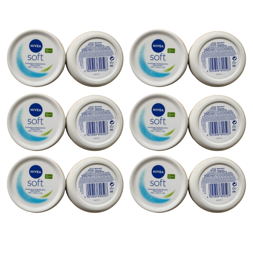 6 x 200ml NIVEA Soft Moisturising Cream - Vitamin E & Jojoba for Face, Body & Hands