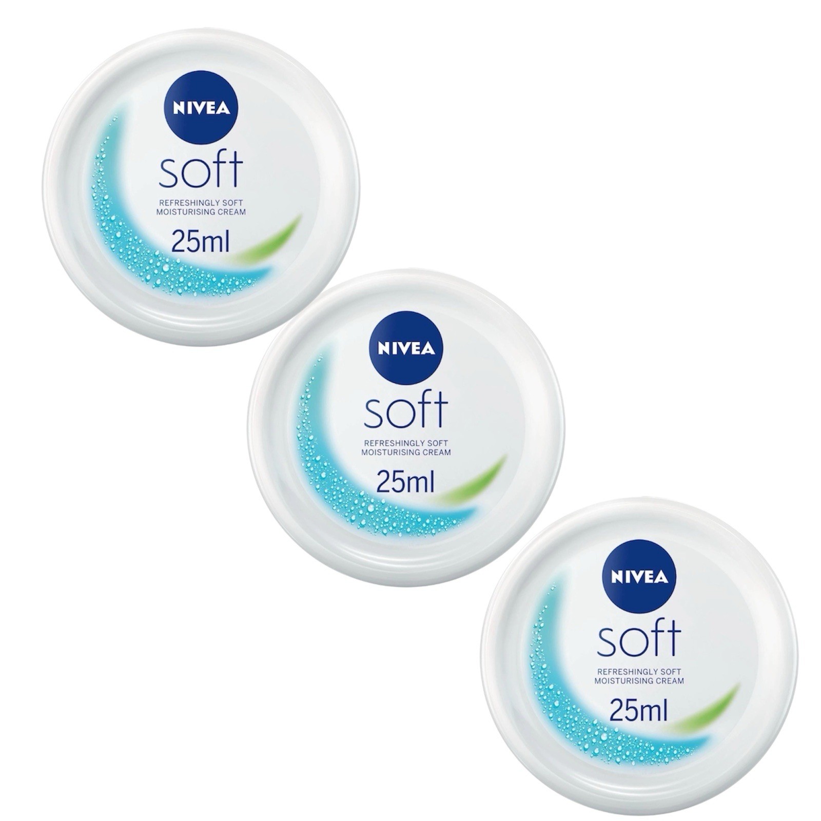 3 x 25ml Nivea Soft Refreshingly Moisturising Cream Travel Size