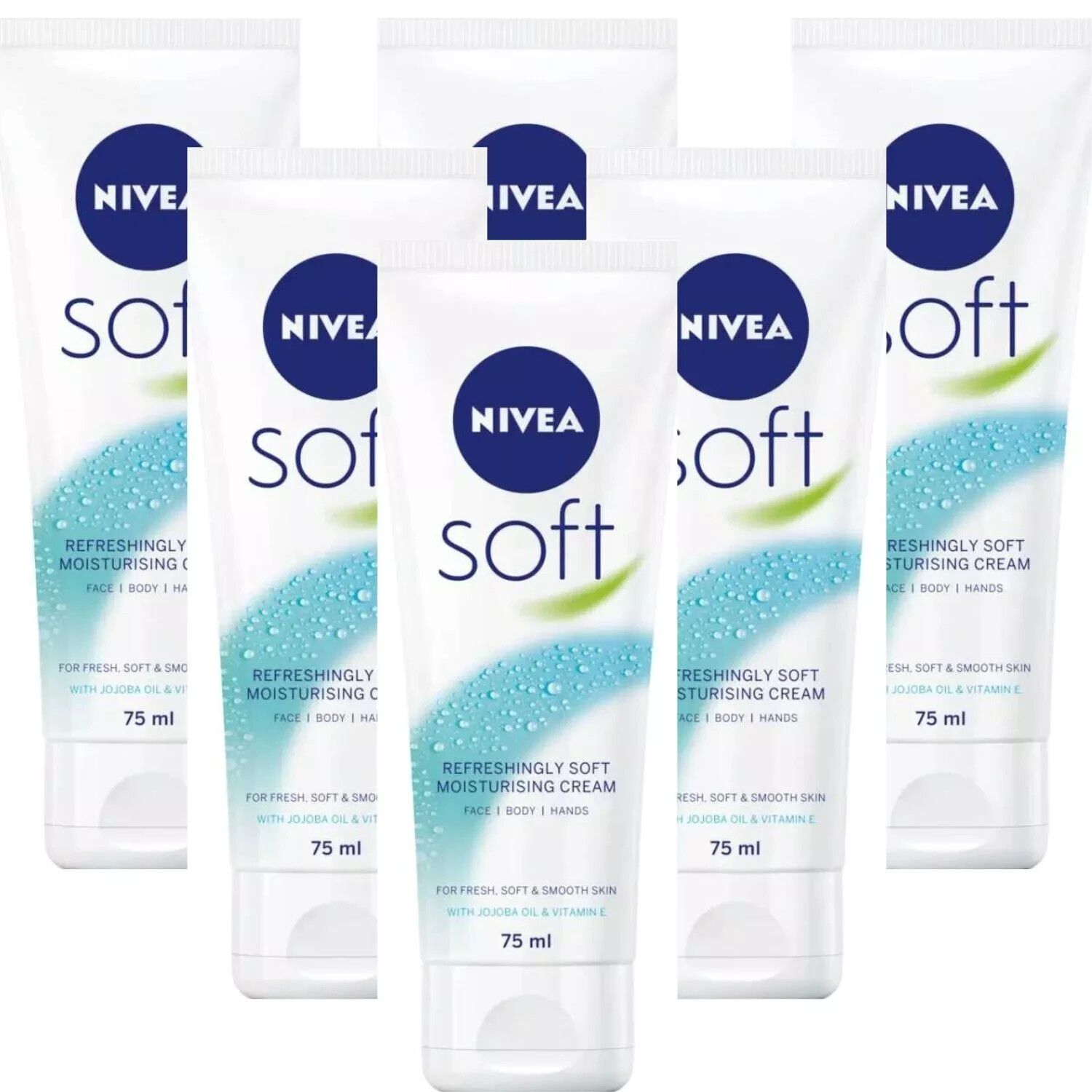 Nivea Soft Moisturiser Cream for Face Hands And Body 75ml Pack 6 ( New Formula)