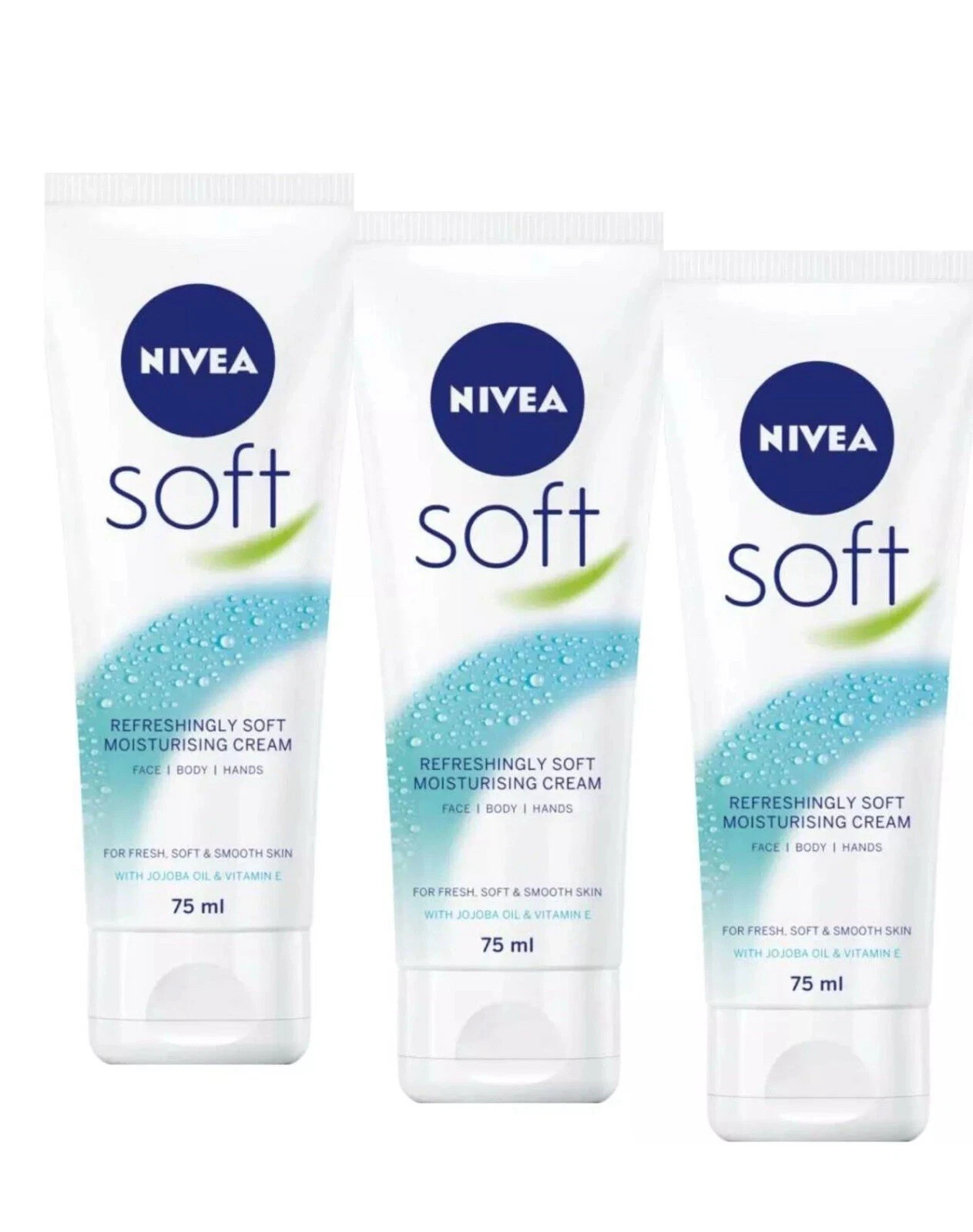 Nivea Soft Moisturiser Cream for Face Hands And Body 75ml Pack 3 ( New Formula)