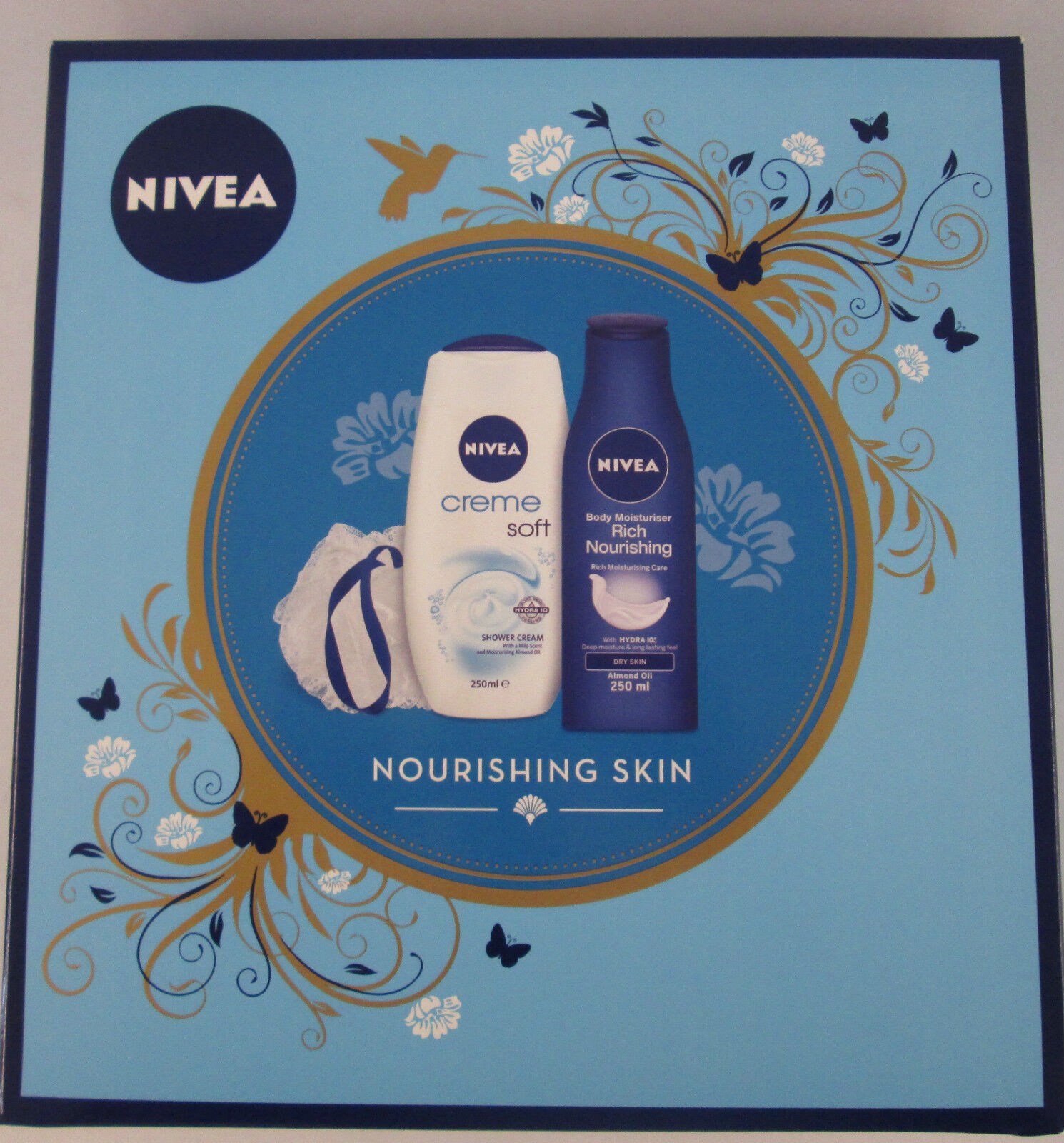 NIVEA GIFT SET 250ML CREME SOFT SHOWER 250ML RICH NOURISHING LOTION SHOWER PUFF