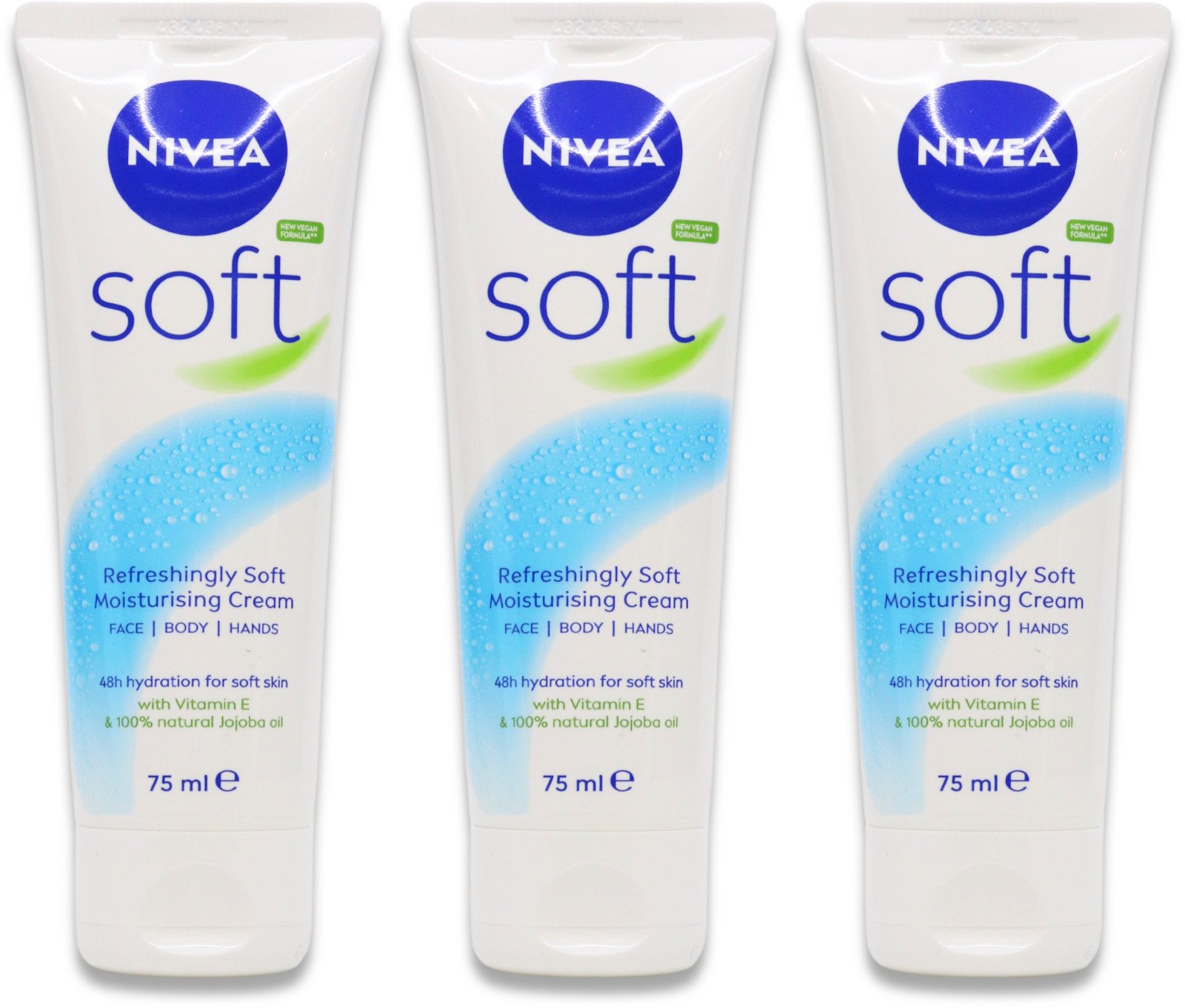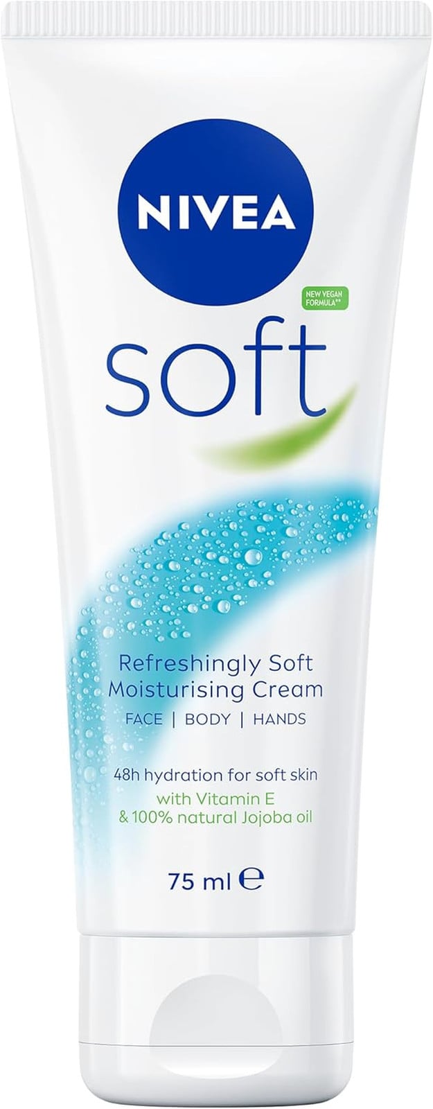 NIVEA Soft Moisturising Cream (75ml), 48H Moisturising Cream for Face, Body and Hands with Vitamin E and Jojoba Oil, Hand Lotion Moisturises Deeply, Vegan Formula Day Moisturiser