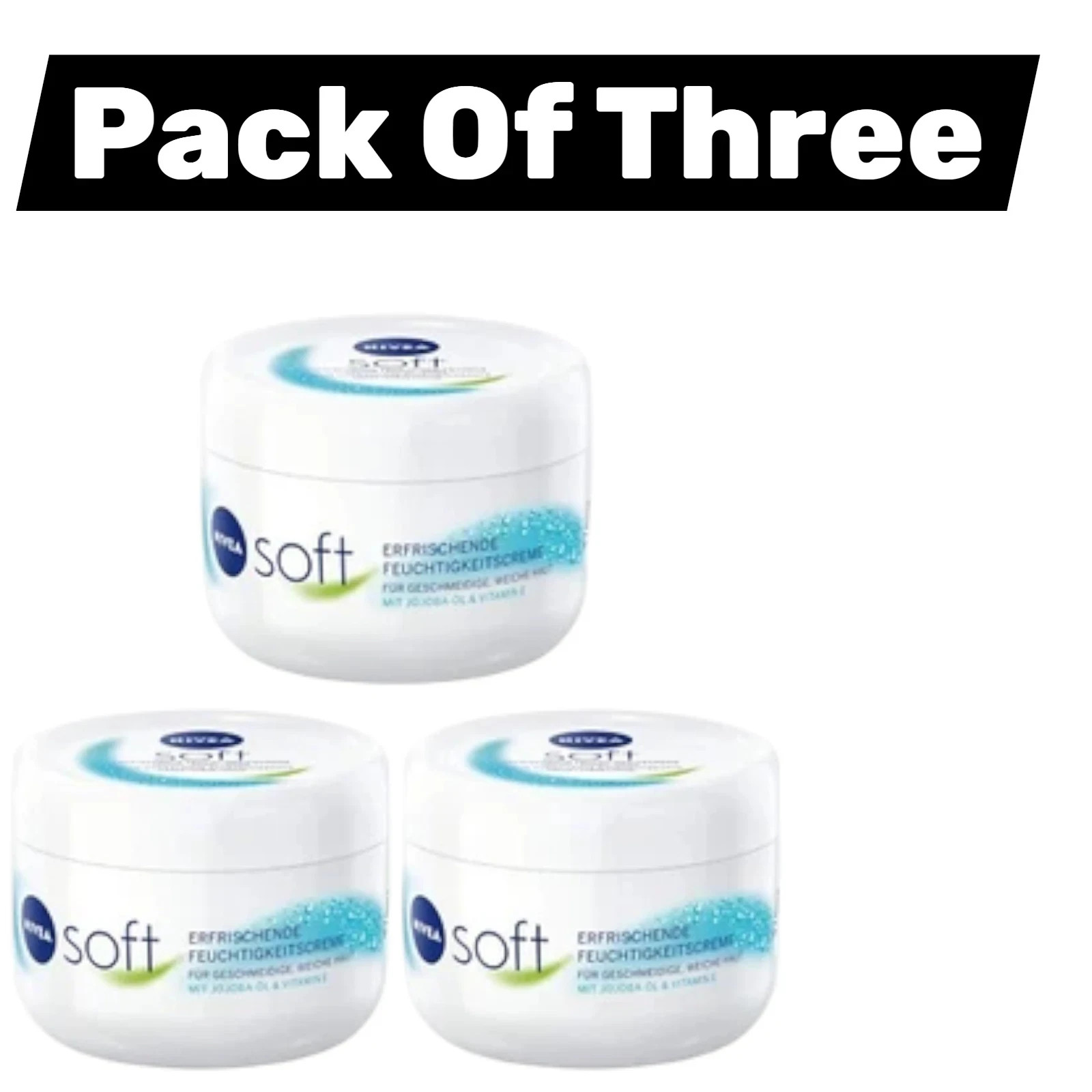 3 PCS NIVEA SOFT MOISTURISING CREAM 300ML FACE BODY HANDS REFRESH MOISTURISER
