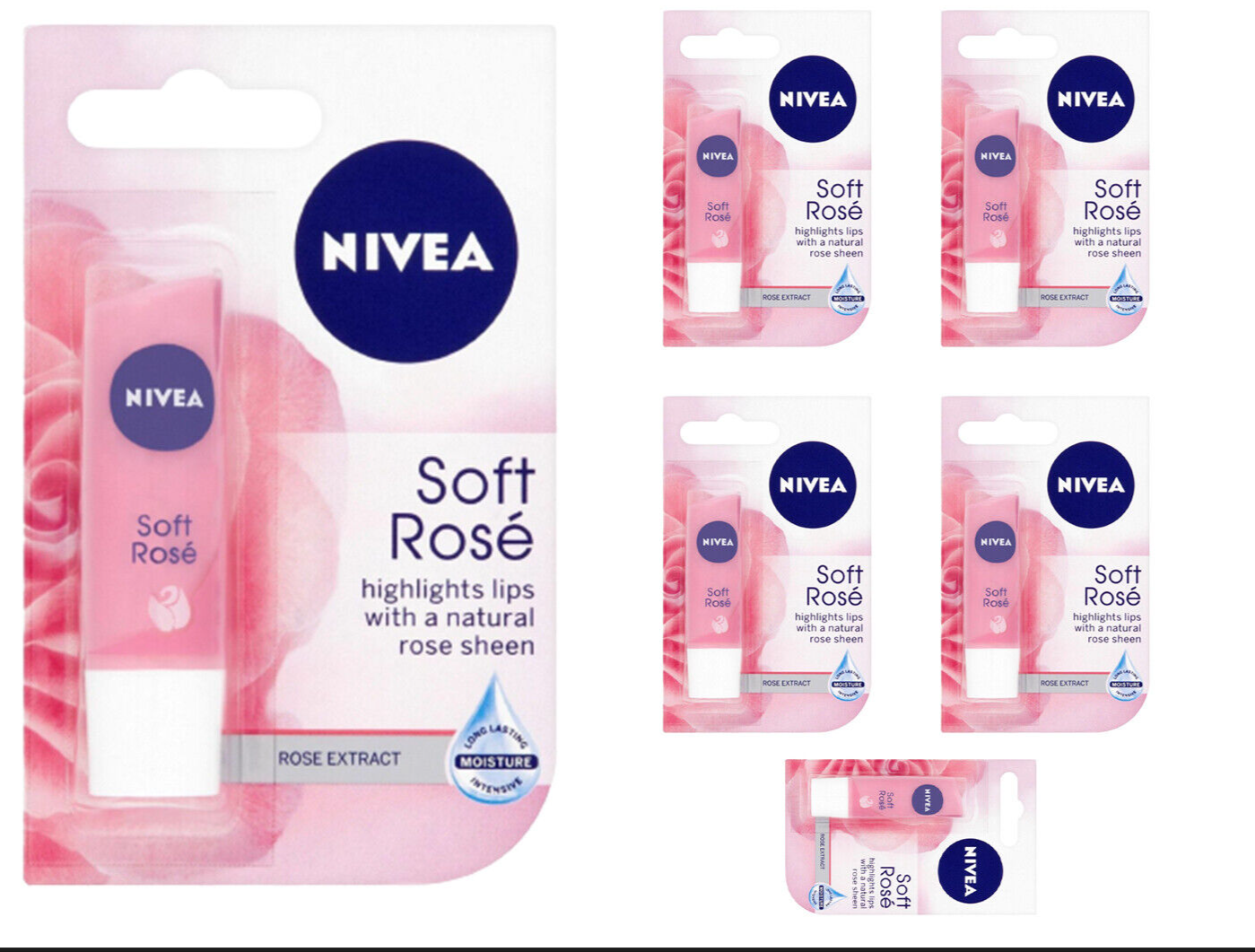 Nivea Soft Rose Caring Lip Balm X5 - 24 Hour Moisture JUST £11.39 FREE POST