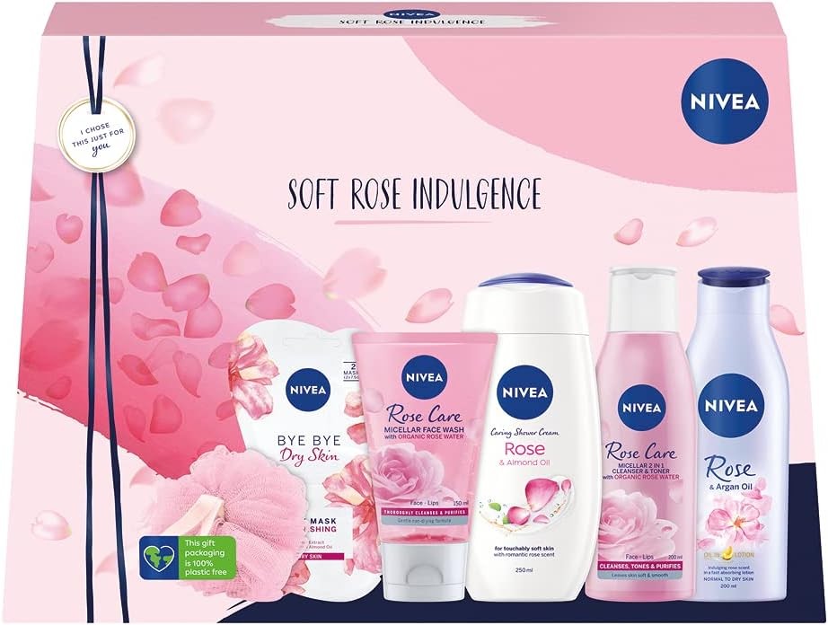 NIVEA Soft Rose Indulgence Gift pack, Full-Size Rosey Set, 7 Piece Set
