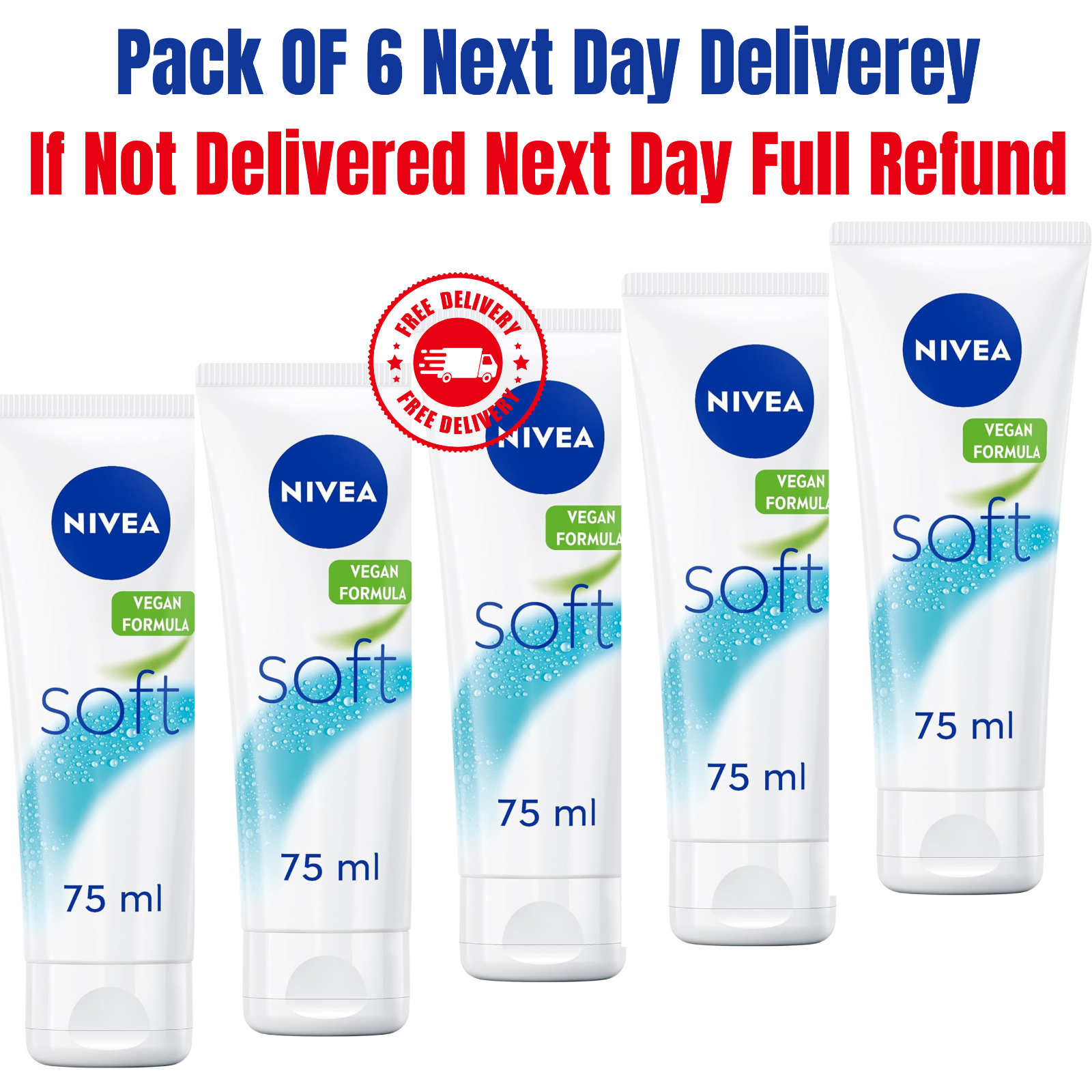 6 x NIVEA Cream Soft 75ml Tube - Soft, Smooth Skin with Lightweight Cream