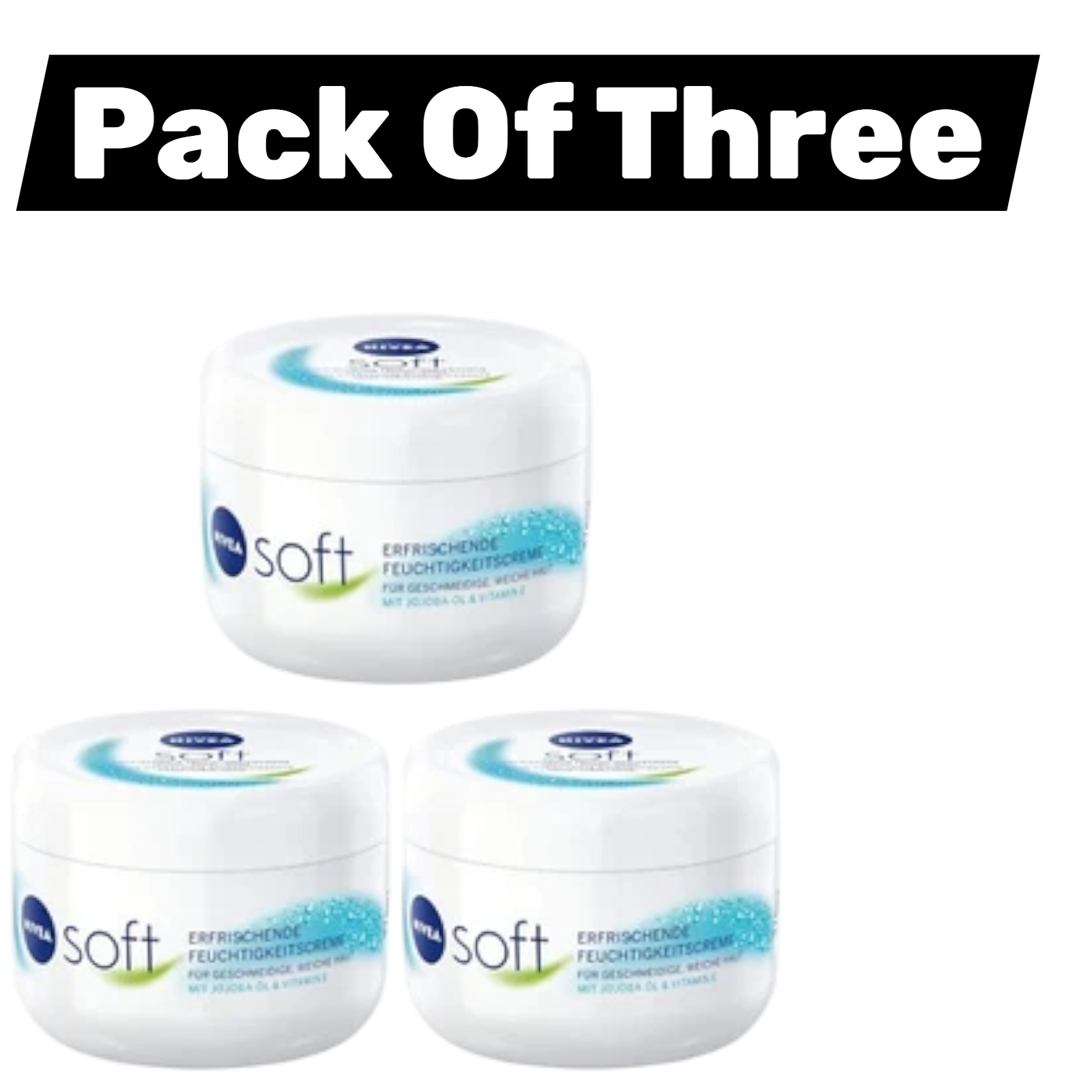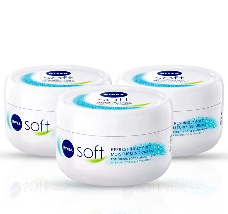 NIVEA SOFT 3 x 300ml Refreshingly Soft Moisturising Cream New VEGAN
