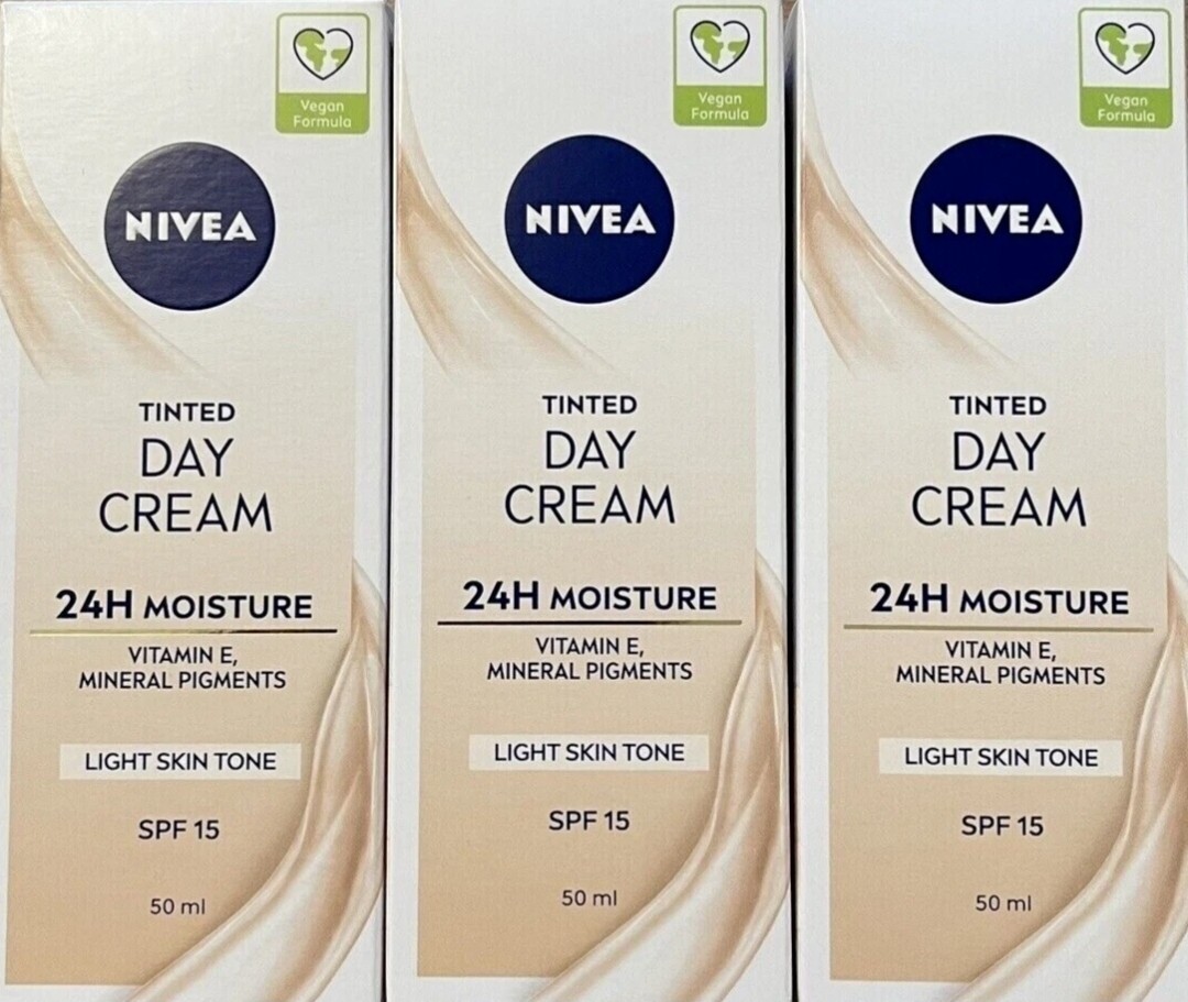 3 x NIVEA Tinted Moisturising Day Cream - SPF15 - 24H Moisture & Soft Tint 50ml