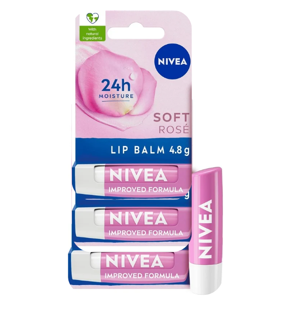 Nivea Soft Rose Caring Lip Balm X3 - 24 Hour Moisture JUST £7.79 FREE POST