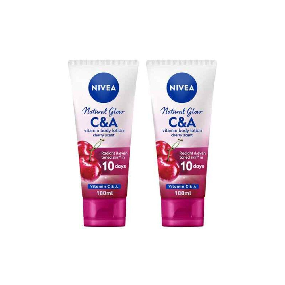NIVEA Moisturising And Soothing Body And Hand Lotion Natural Glow Vitamin C & A Cherry Scent 180ml Pack of 2