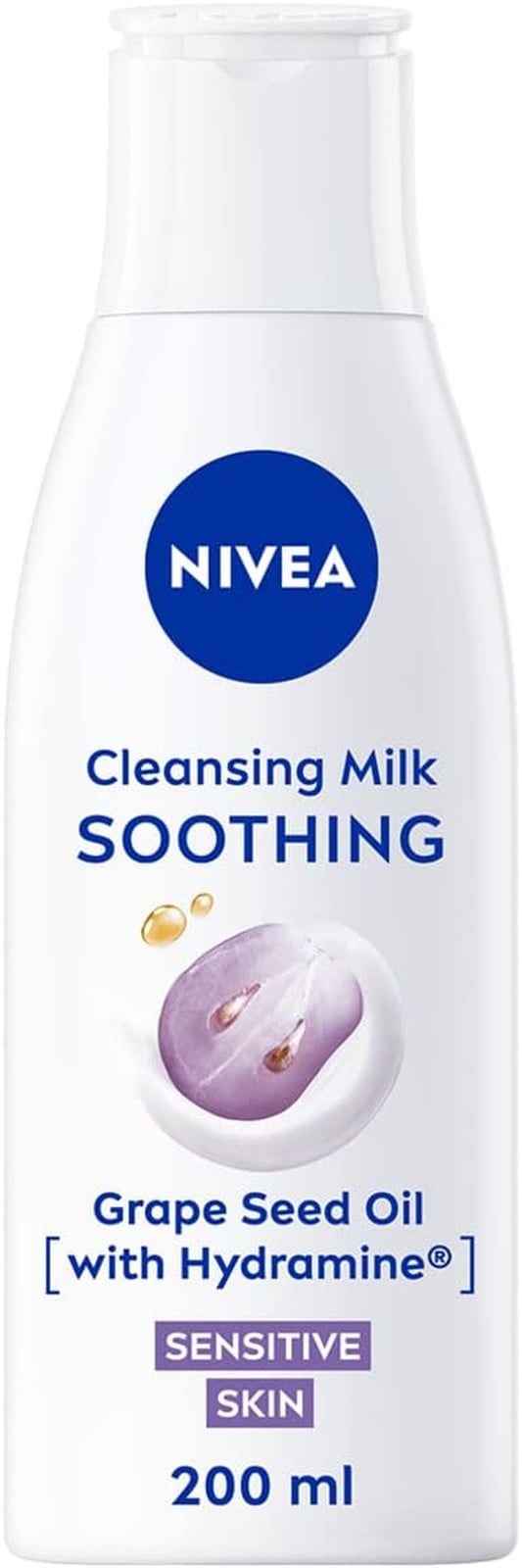 NIVEA Soothing Cleansing Milk (200ml), Face Cleanser with Grape Seed Oil and Hydramine, Gently Cleanses Without Drying Out, Make-up Remover Cleanser for Sensitive Skin
