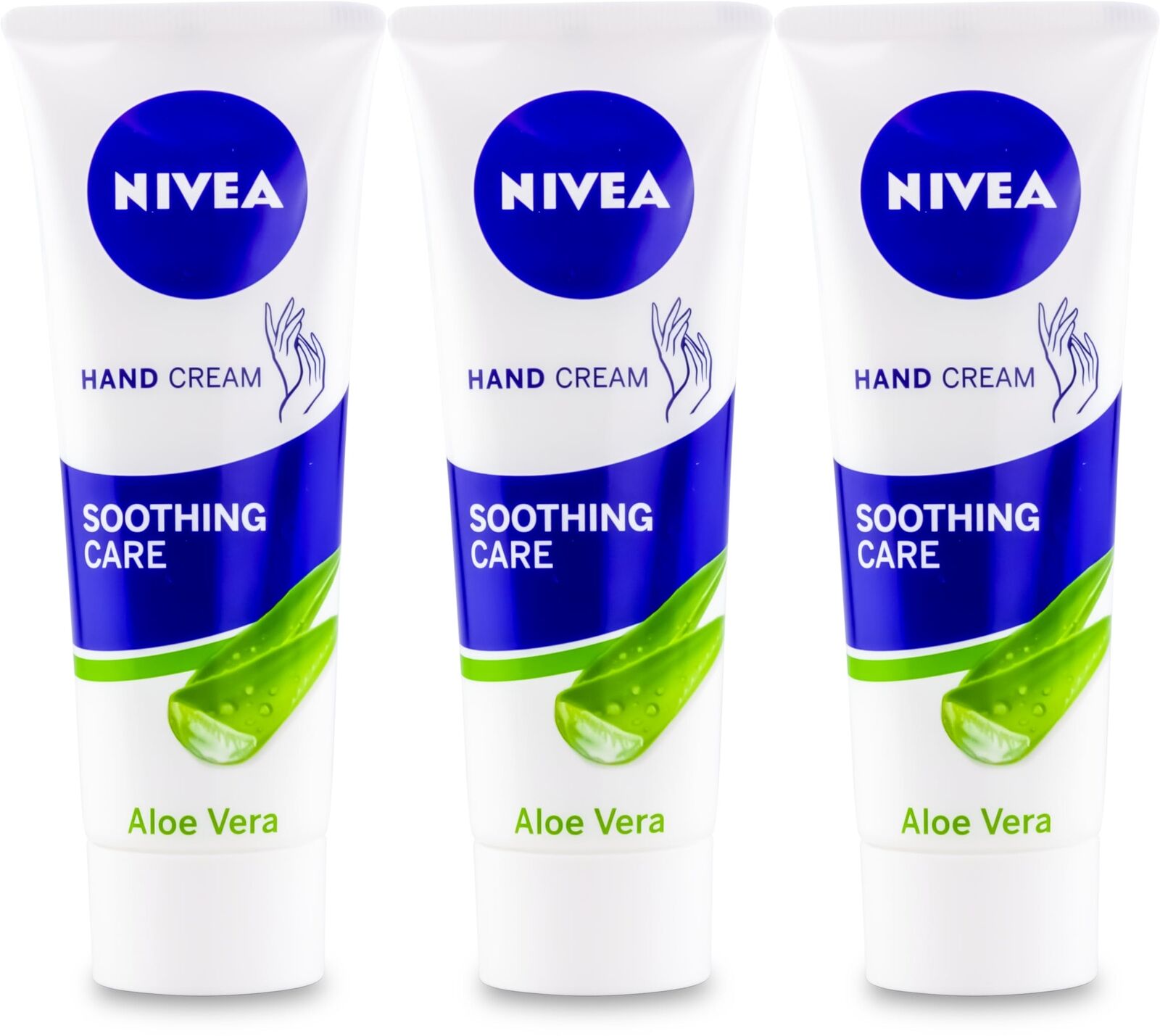 3 x 75ml Nivea Hand Cream Soothing Care Aloe Vera