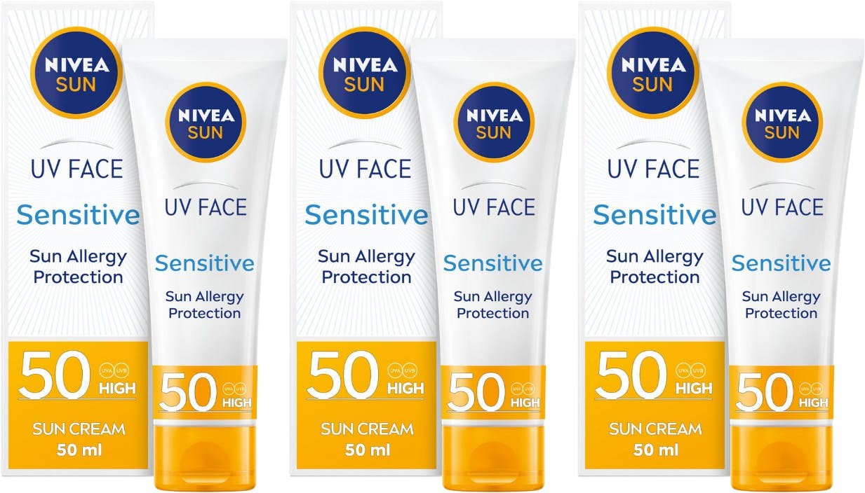 Nivea Sun Soothing Sensitive Face Cream SPF50 50ml X 3