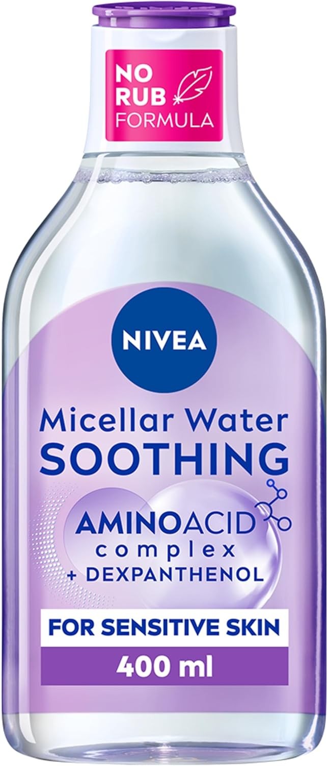 NIVEA Micellar Water Soothing, Fragrance Free Eye Makeup Remover, Micellar Cleansing Water for Sensitive Skin, Gentle Skin Cleanser (400ml)
