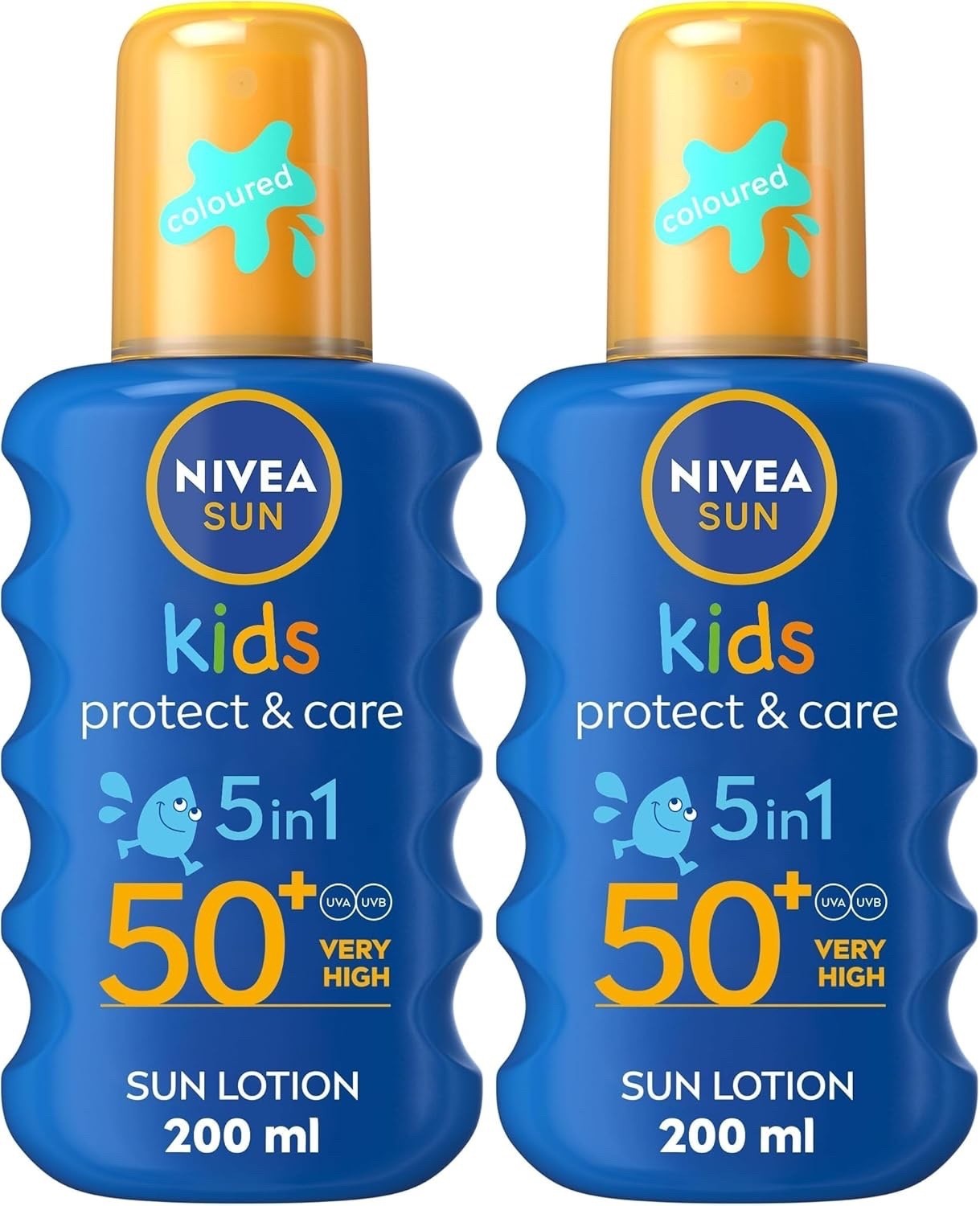 NIVEA KIDS PACK of 2 x 200ml MOISTURISING SUN SPRAY 50+ UVA/UVB WATER RESISTANT