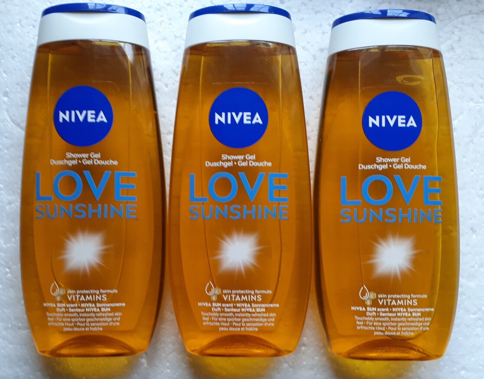 Nivea Sun Scent Love Sunshine Shower Gel 3 x 250ml Skin Protecting Vitamins C E