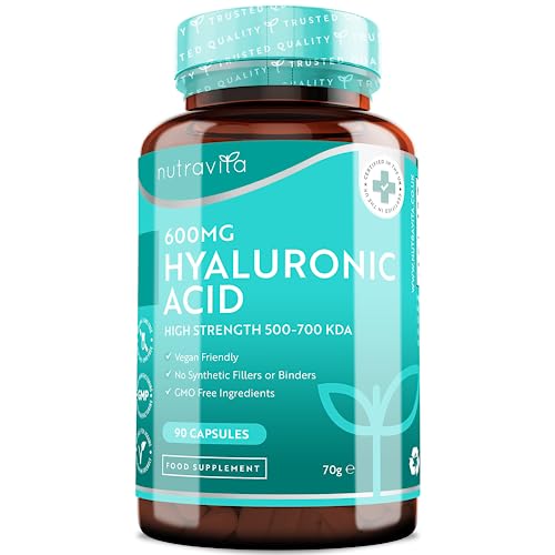 Hyaluronic Acid Capsules - 3 Month Supply of 600mg Hyaluronic Acid Capsules - High Dose with 500-700 KDA - GMO Free with No Synthetic Fillers or Binders - Made in The UK by Nutravita