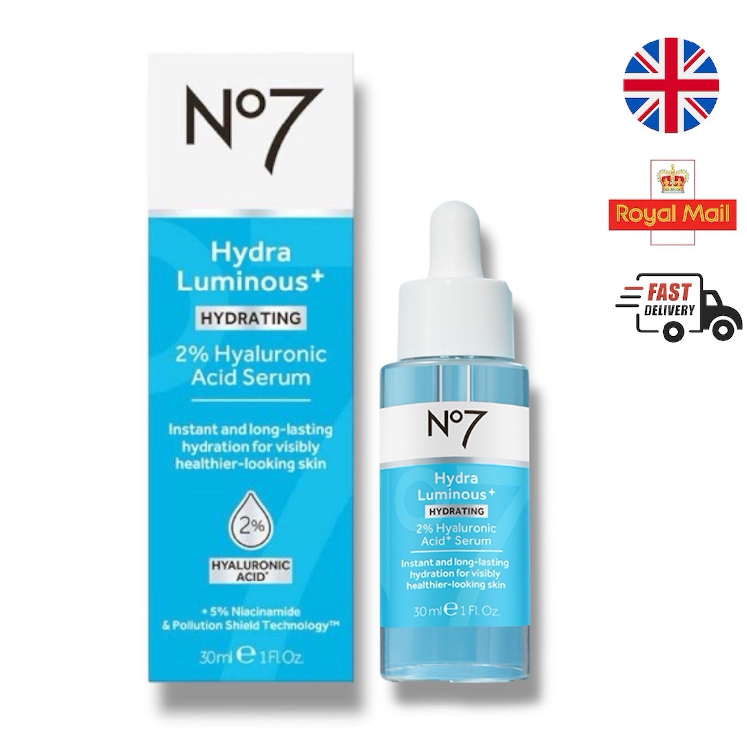 No7 HydraLuminous Hydrating 2% Hyaluronic Acid Serum 30ml Instant & Long Lasting