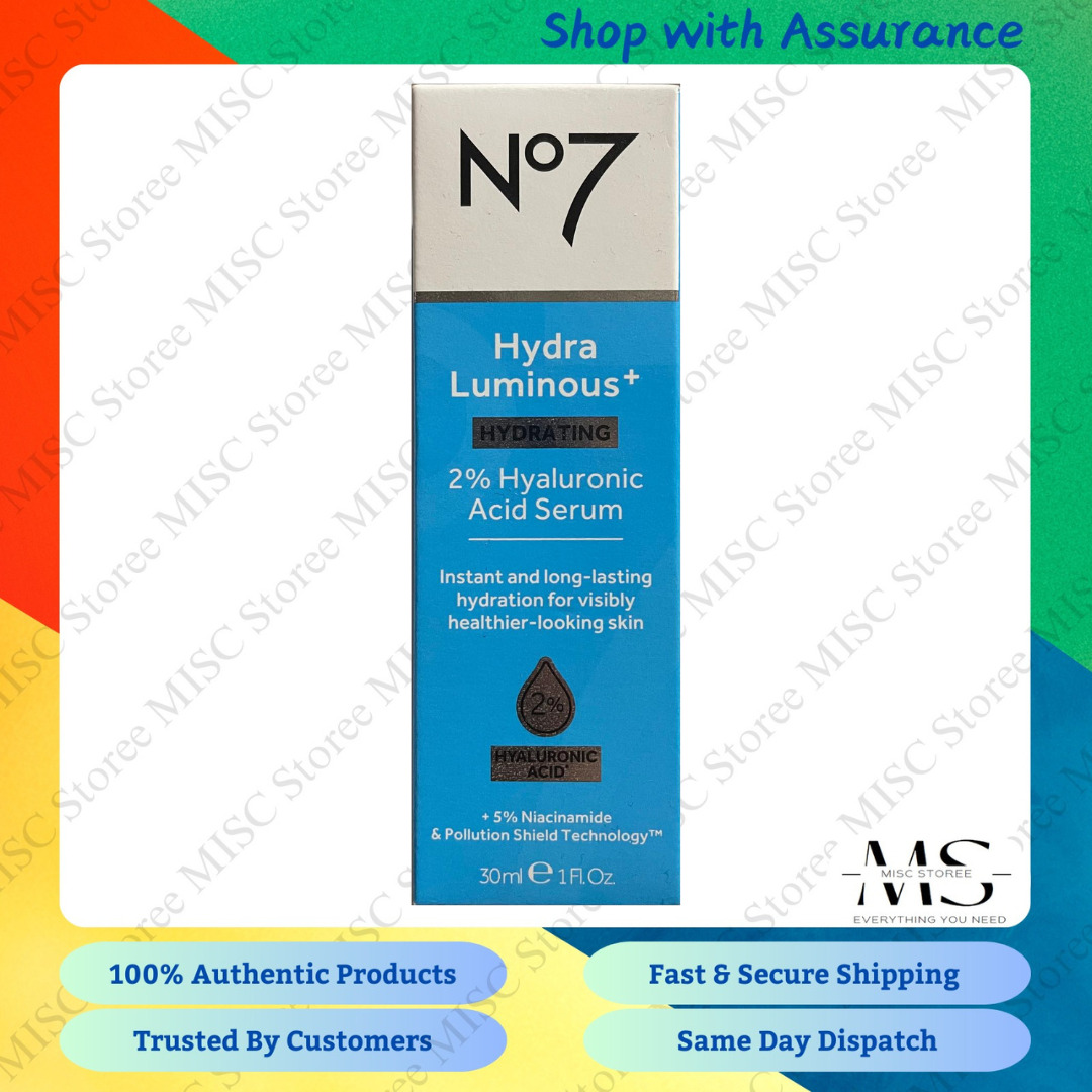 No7 HydraLuminous Hydrating 2% Hyaluronic Acid Serum 30ml Brand New