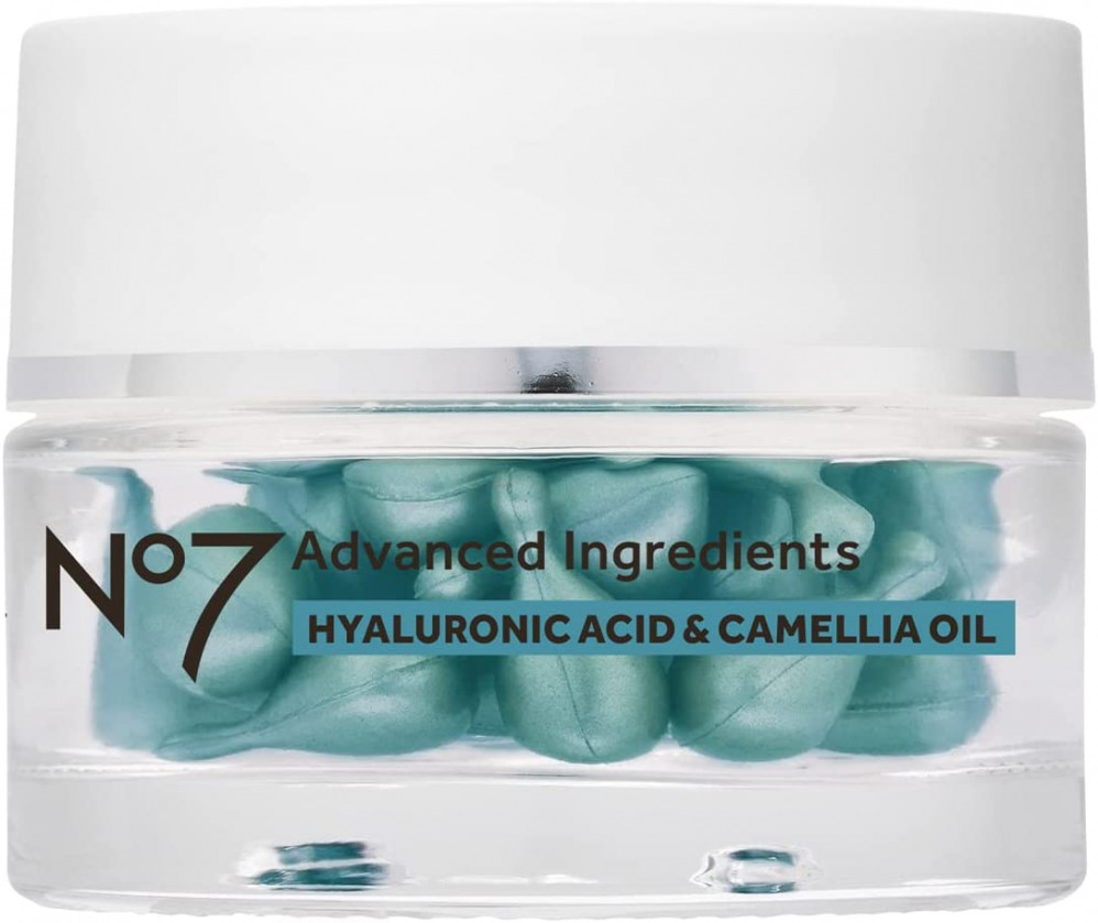 No7 Advanced Ingredients HYALURONIC ACID & CAMELLIA OIL Facial Capsules 30s
