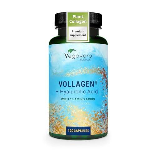 Vegavero Vegan Collagen Complex + Hyaluronic Acid | NO Additives | Vegan Collag Powder Vollagen | Essential Amino Acids | 120 Capsules