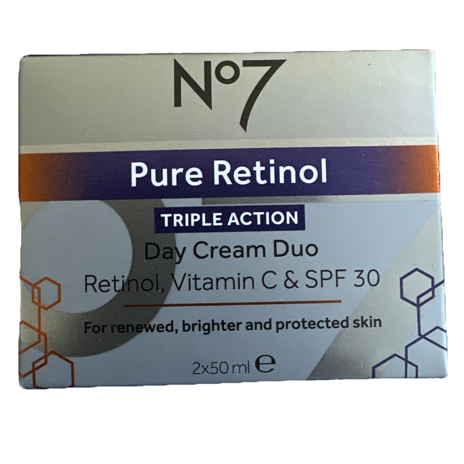 No7 Pure Retinol Triple Action Day Cream Duo Retinol Vitamin C & SPF30 2 x 50ml.