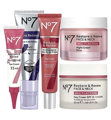 No7 Restore & Renew Serum 30ml, Day Cream 50ml, Night Cream 50ml, Eye Cream 15ml