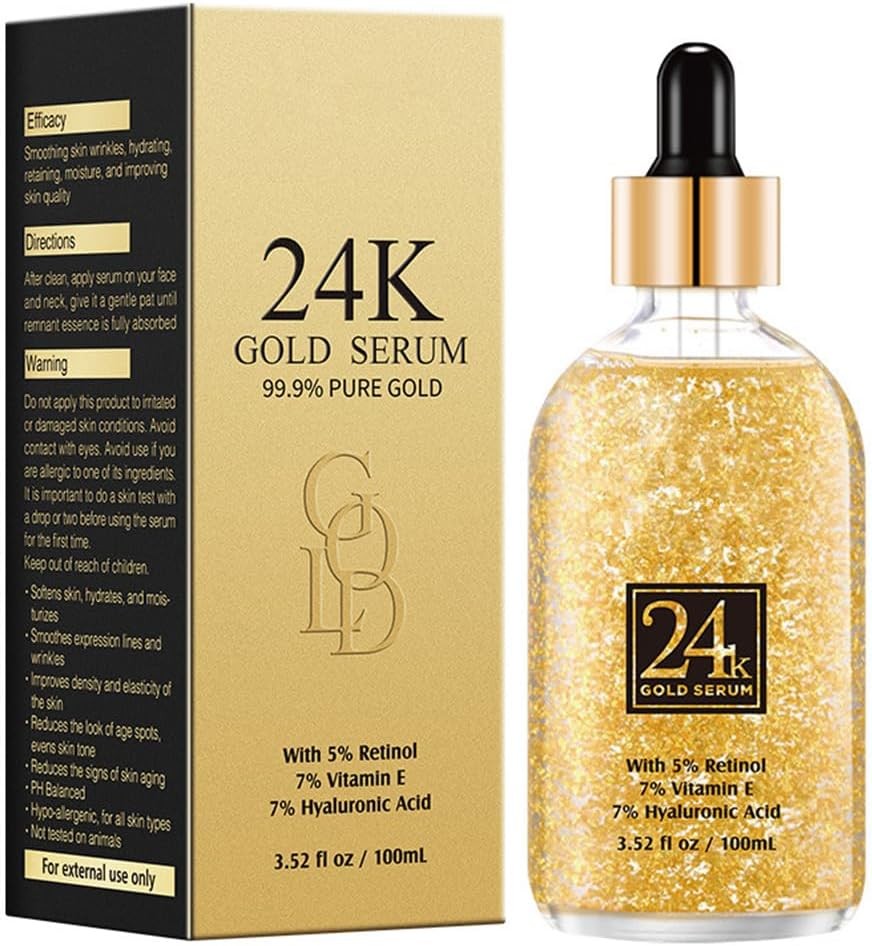 24k Gold Serum for Face with 5% Retinol, 7% Vitamin E, 7% Hyaluronic Acid, 99.9