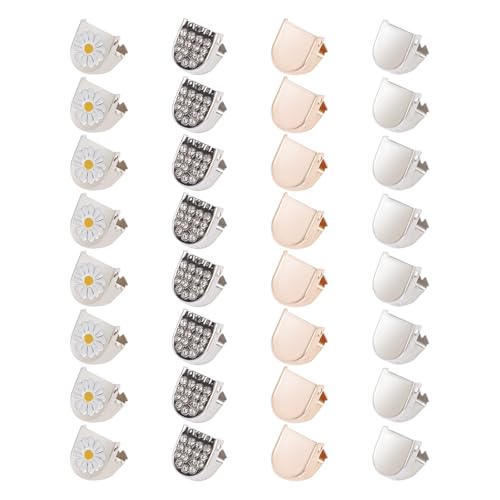 UTHCLO 32pcs Shoelace End Fixing Clip Shoelace Locking Clips Fix No Need to Tie Daisy Flower Pattern Premium Iron Material DIY Repairing Suitable for People Suffering from Arthritis