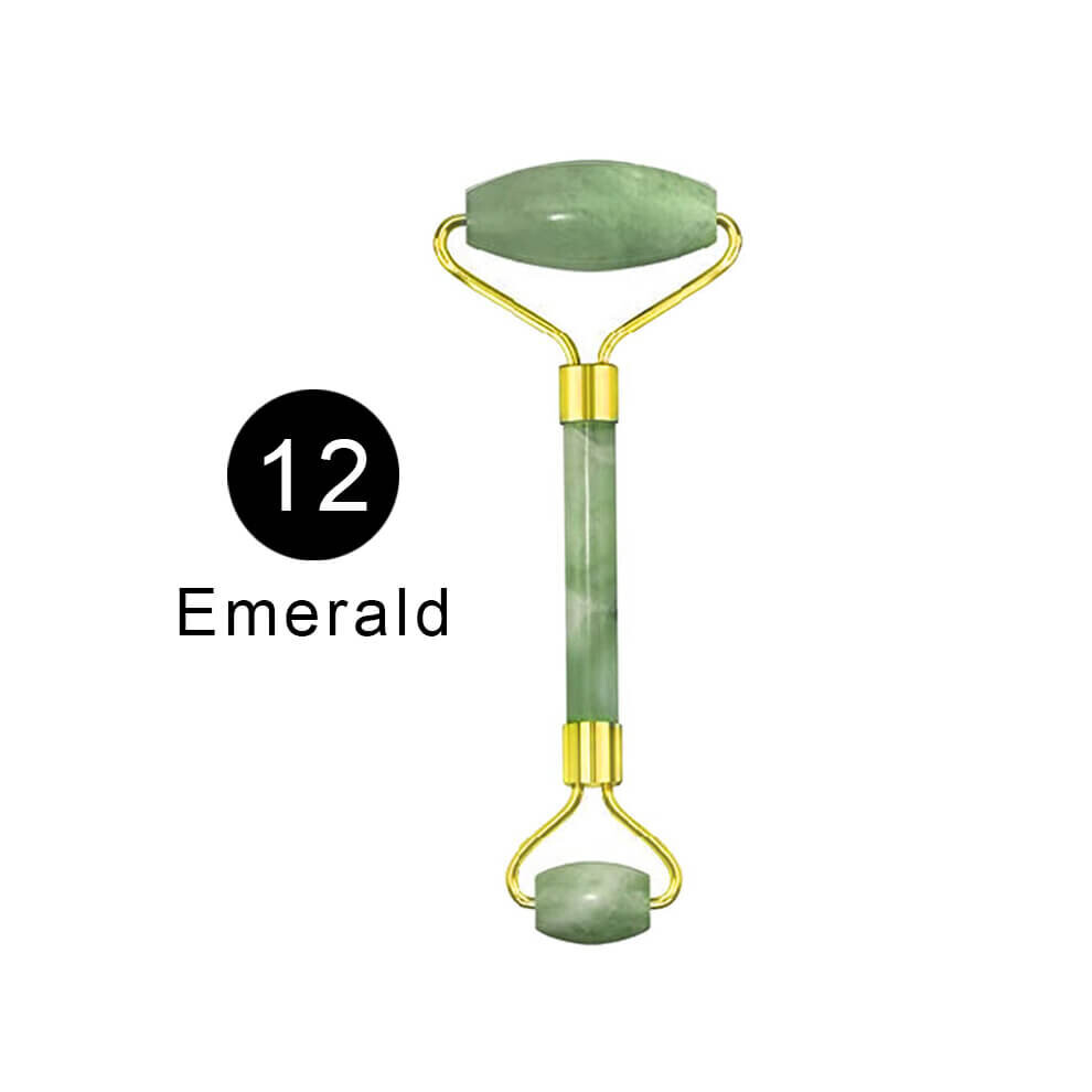 (a-12 Emerald No Box) Natural Jade Roller Lift Facial Thin Massager Box Slimming Body Skin Pink Gem Anti Forehead Wrinkle Remover Stone Lover Gift Set