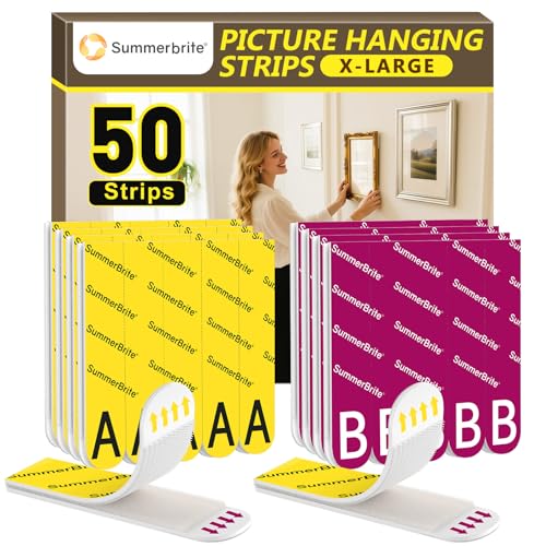 Summerbrite Picture Hanging Strips Heavy Duty 25 Pairs(50 Strips,XL),Damage Free Hanging Adhesive Strips,Mounting Tapes Removable,No Nails for Picture Photo Frames Hanger