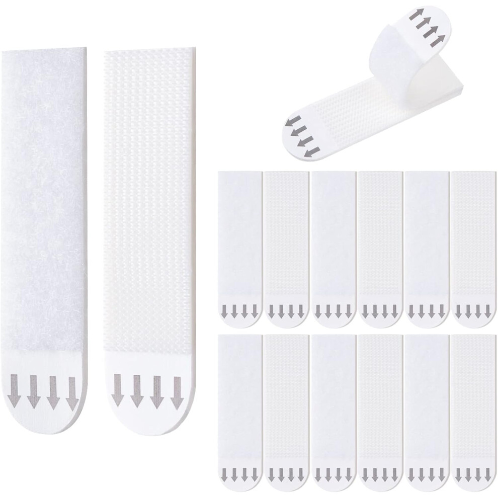 BRAVESHINE 12PCS No Nails Picture Hanging Strips Double Sided Adhesive Sticky Hook Loop Mounting Fastener Tape for Wall Floor 3x10cm, White