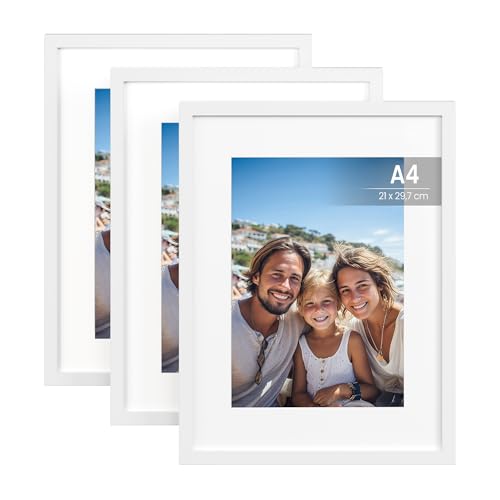 SONGMICS Picture Frames, Photo Frames for 6x8 Photos, Wall Hanging or Tabletop Display, MDF Board, No-Trace Nails Included, Set of 3, White RPF056WZ01