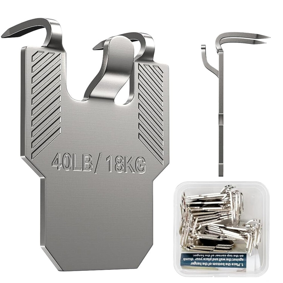 Lyreh 20pcs Drywall Picture Hanging Claw, Stainless Steel No Nails Required Wall Picture Hangers Claws Plasterboard Mirror Hooks Holds up to 40lb for Photo Frame Mirror Artwork Kit