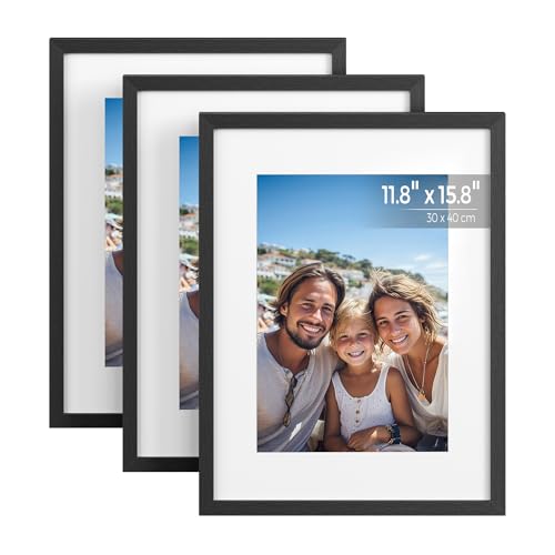 SONGMICS Picture Frames, Photo Frames for 8x12 Photos, Wall Hanging, MDF Board, No-Trace Nails Included, Set of 3, Black RPF057BZ01