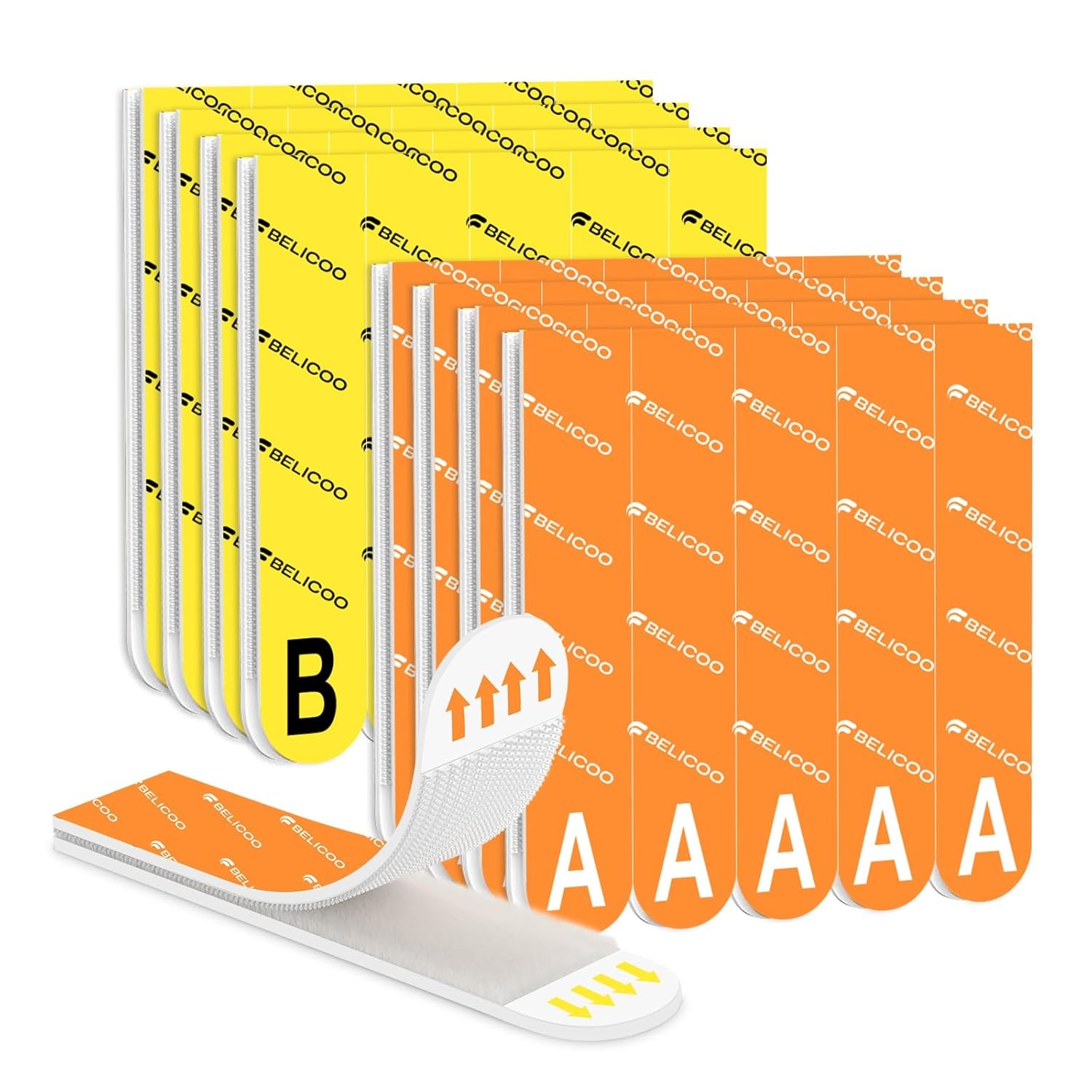 BELICOO Large Picture Hanging Strips Heavy Duty, 40-Pairs(80 Strips) No Nails Water Resistant Adhesive Strips, 100 * 20mm Damage Free Photo Frame Stickers for Wall, Hanging Posters