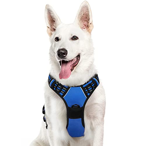 Eagloo Dog Harness Large Dog, No Pull Harness with Front Back Clips, Adjustable Pet Walking Vest, Soft Padded Pet Vest, Reflective No-Choke Breathable with Easy Control Handle, Blue, XL