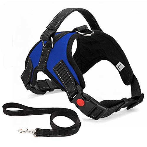 Musonic No Pull Dog Harness Breathable Adjustable Comfort Free Lead Included for Small Medium Large Dog Best for Training Walking XL Blue